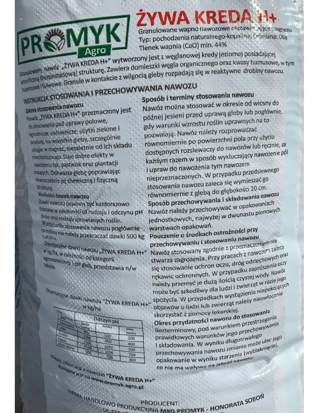 Kreda – podnosi poziom pH oraz uzupełnia glebę w zasoby wapnia przyswajalnego.